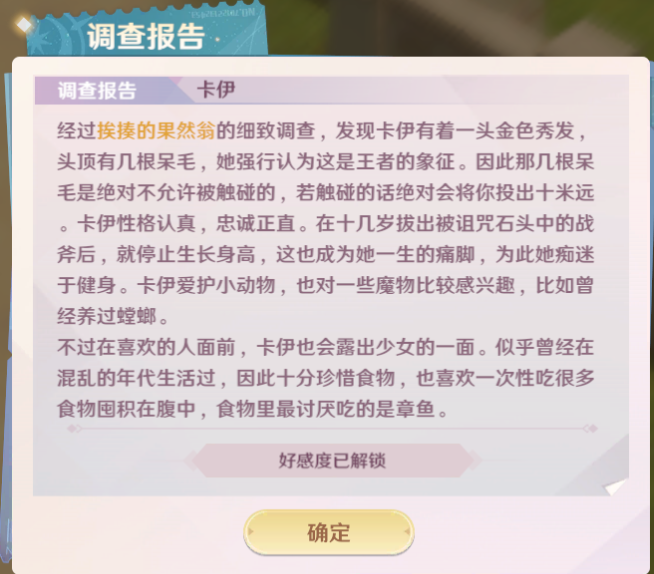 2)NPC的好感度提升效率:这个是可以在NPC详情界面中查看的,当我们进入NPC详情界面的时候,可以看到【性格和背景】右侧有个小图标,这时候点击一下就会显示NPC的性格描述和人物背景。