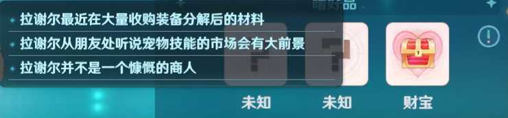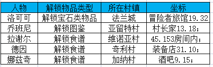 洛可可:解锁宝石类物品,赠送喜爱财宝的NPC时可获得大量好感度,法兰城,冒险者旅馆19.32;
