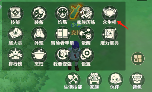 当众生相功能开启后,我们可以在右下角的功能栏中找到它。