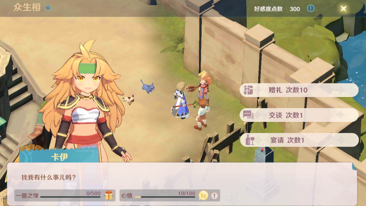交谈每天的次数上限是1次,每次赠礼消耗10点好感度点数,随机获得一定数量的好感度,说实话这个性价比很低,不太建议大家进行交谈行为。
