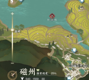 1、首先打开地图选择来到磁州(644,1560)的坐标位置处。
