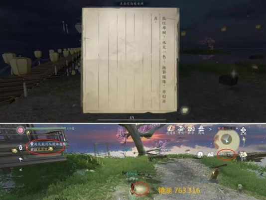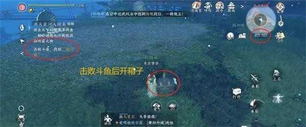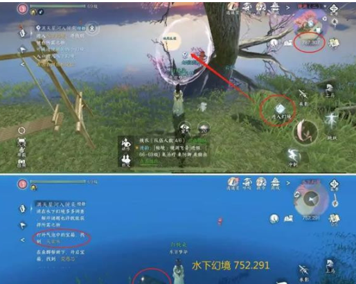 3.第三步天玄木获得是镜湖(783,307)先进入水下幻境,再打开气泡中的宝箱(752,291)。