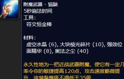 魔兽世界猫鼬附魔效果-猫鼬附魔材料一览