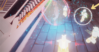 3、竞技场与圆梦村地图连接入口的右手边一样的看台处,四个先祖就在向导先祖的旁边。
