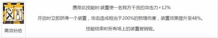 装置拥有天赋团结的力量:使身后一格友方干员受到的物理伤害减少20%。