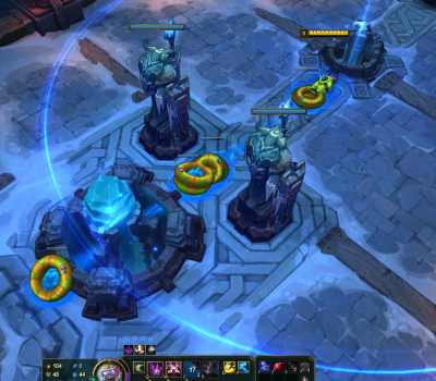 2、后手R:雪球砸到过去打一套,然后用R技能的不可选取状态规避防御塔仇恨。