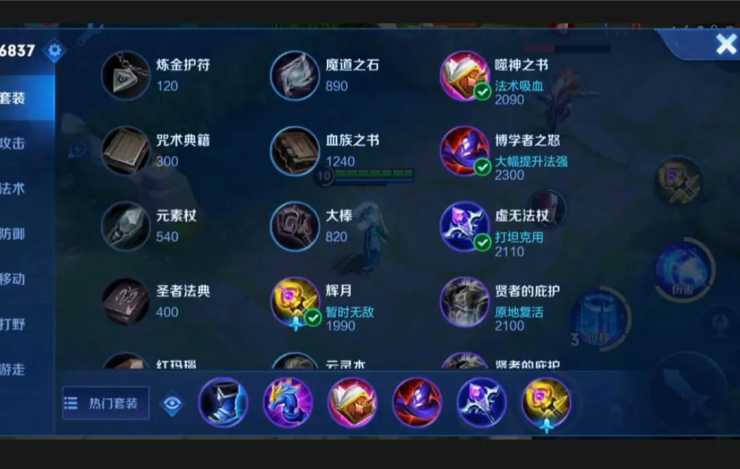 然后我们出装直接是秘法之靴,回响,噬神之书,帽子,虚无法杖和辉月。