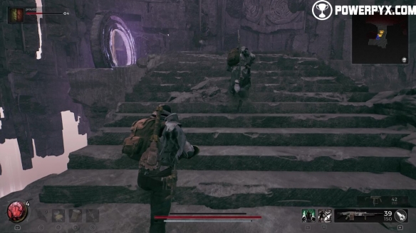 现在前往迷宫中的破碎入口世界之石。爬上右边的第一段楼梯,然后再次右转。