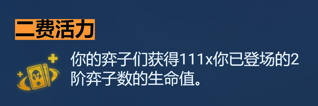 大家想一下,场上都上2费棋子,在搭配这个符文,场上棋子血量暴涨,阵容整体的坦度与生存能力就能获得了史诗级提升,收益非常高,可以说直接2星变3星血量。