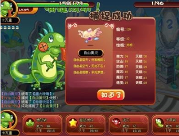 第三步,看,5颗星!!!和他对战,我这里使用卡瓦重!【建议使用会用昏睡 慈悲为怀的小宠物(^.^)】先用慈悲为怀,将至1生命力,然后用高级咕噜球捕捉!
