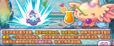 自由黄灵抓取攻略第一步,洛克王国自由黄灵每天下午2-4点,晚上的6-9点在漂浮宫殿战斗就有机会遇见它哦。