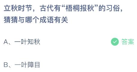 问题二、立秋时节,古代有“梧桐报秋”的习俗,猜猜与哪个成语有关?