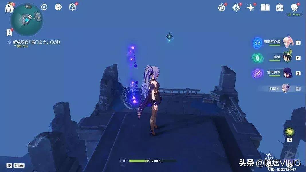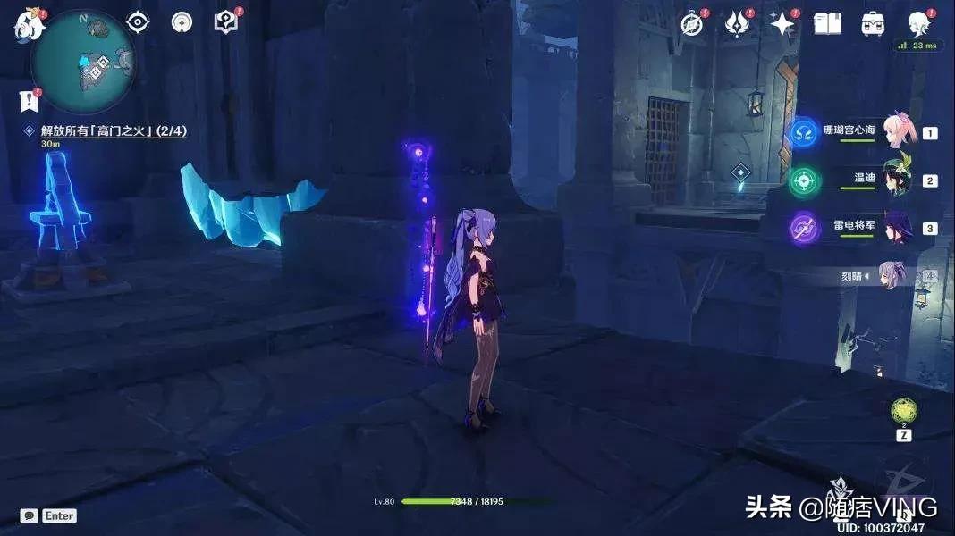 6、最后一个火炬位于西侧房间的楼顶,岩元素角色或者风元素角色垫高点就可以了