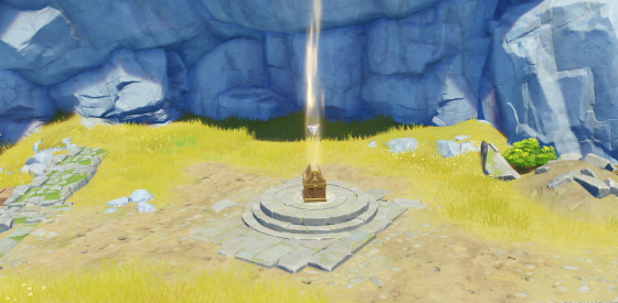 位于遗迹石碑东边石台,靠近部件后会进入挑战。击败所有魔物后将部件带回遗迹石碑即可。