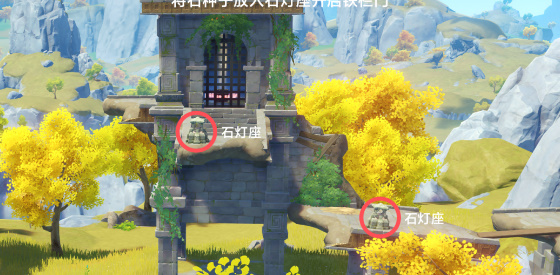 位于遗迹石碑南边遗迹第二层,需要采集石种子并将其放入石灯座。开启铁栏门后获取第3个部件并将部件带回遗迹石碑即可。