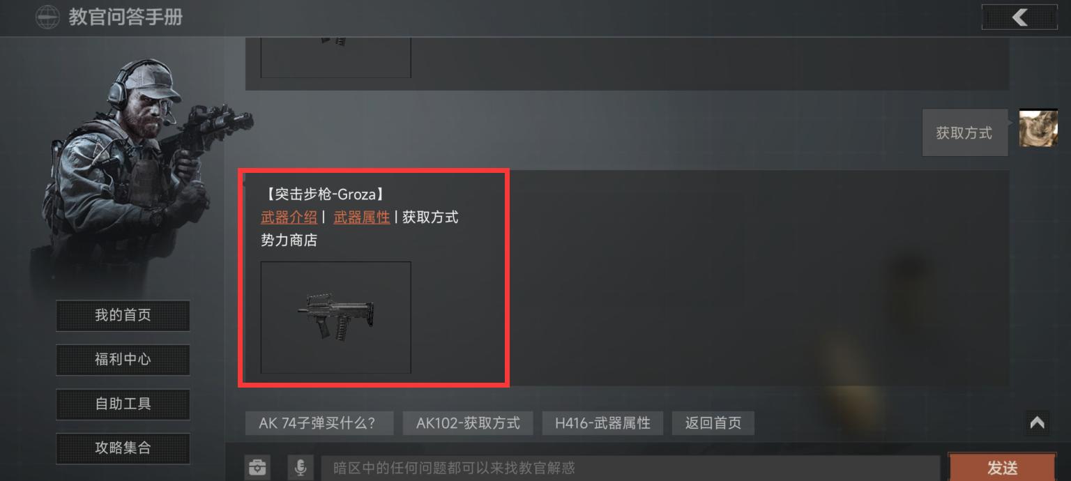 暗区突围新武器狗杂怎么获得?暗区突围中突击步枪-groza,俗称狗杂,可以在“势力商店”购买。groza是产自格勒的新式步枪,枪械采用无托设计,以成熟的AKS-74U突击步枪为参考,设计出一款近身作战能力更为出众的新武器。该武器使用9*39毫米口径弹药。