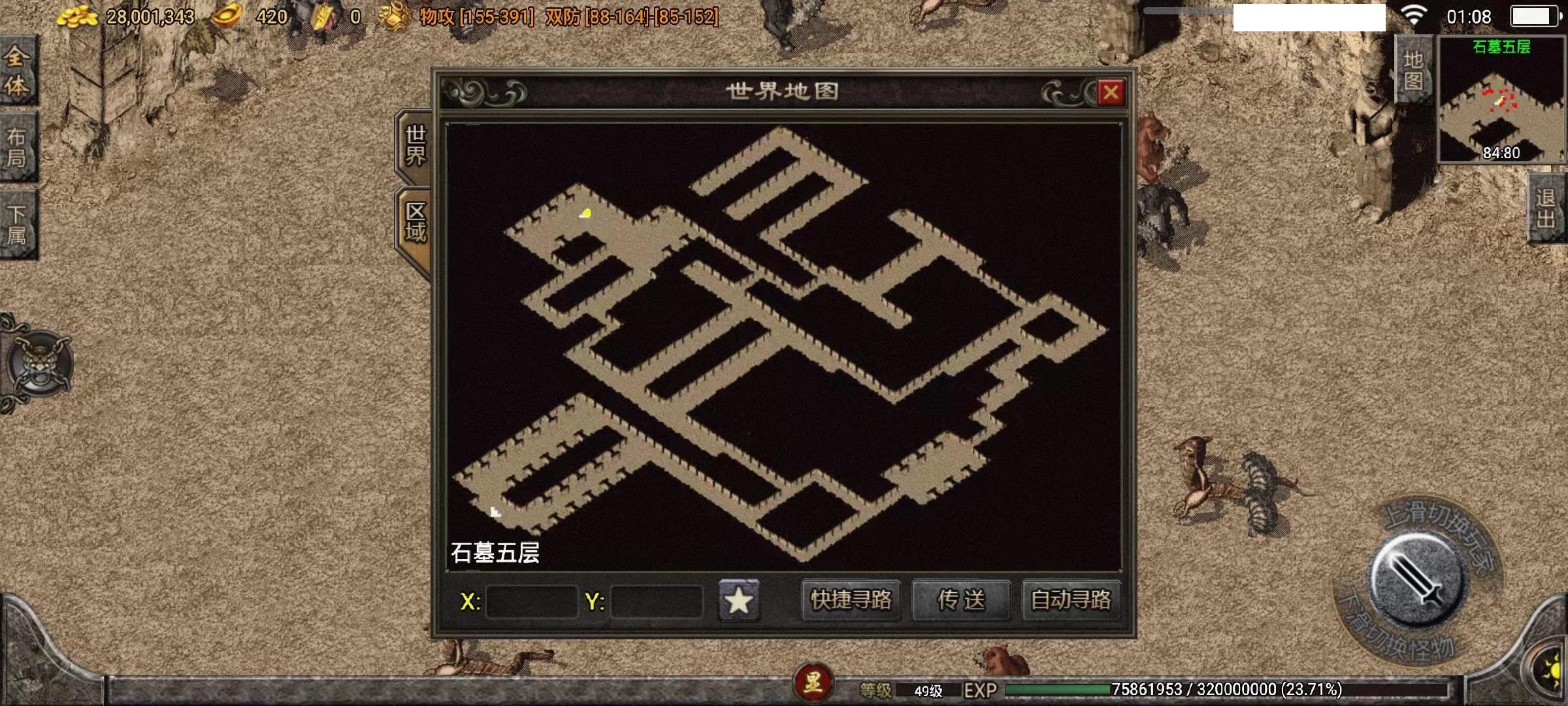 下面我一并把1层到桃园的每层进口坐标总结到下方,方便玩带传送戒指的服。