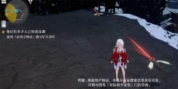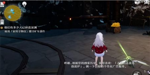 我们可以购买道具查查,进入大矿山地图我们放置查查,跟着光线指向的位置走一定距离后我们再次放置查查如果位置很远的话会出现红光然后跟着光线;