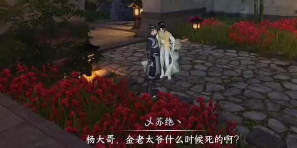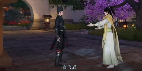 9、剧情结束后我们需要和白飞岩一起来开金府,到达门口之后我们需要试探白飞岩,我们再次和白飞岩进行对话;
