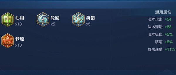 第一套铭文:10梦魇、5狩猎+5轮回、10心眼
