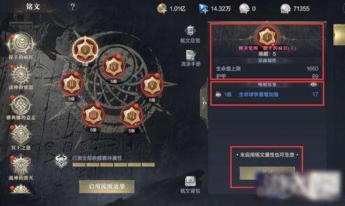 符文提升··每一个符文都能够提升2次,觉醒之后的符文可能提高大量元素属性。