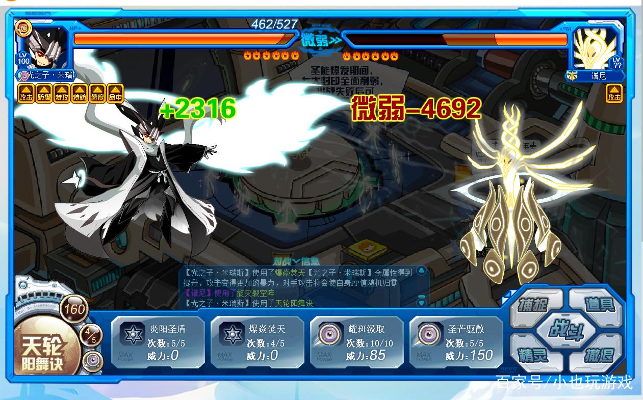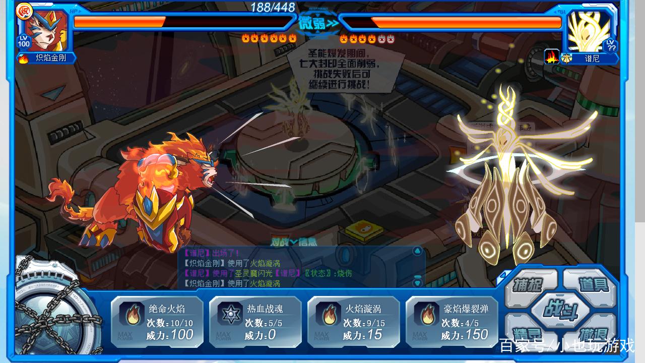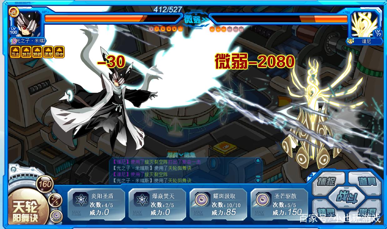 小编这个时候偷懒了,换了一只别的精灵,伤害比米瑞斯高了1000多点,不过依旧是老路子,圣光气用技能顶,其他时间直接大招。等谱尼血量估摸差不多了,直接轰杀完事!