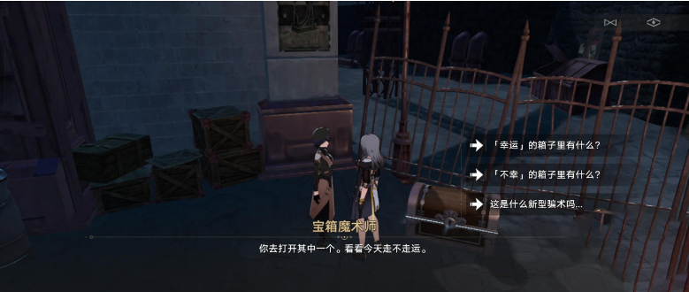 2、她让玩家猜箱子,一个幸运,一个不幸,此时需要挑选一个箱子。