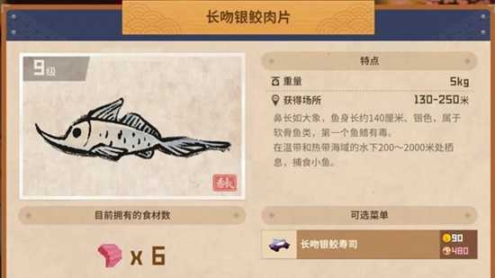 长吻银鲛寿司 售价90金币