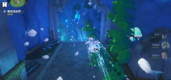 22、水墙碎裂后会一直自由游荡,最后游到终点这个任务就完成了,在终点还能解锁一个传送锚点哦。