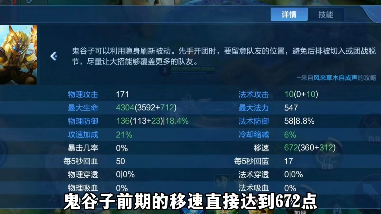 前期出装方面,我们可以先购买2个宝石和一个疾步之靴,这样我们一技能提供的加速效果,就可以让我们鬼谷子前期的移速直接达到672点,这是个什么概念?就是只需要5秒就可以从中路跑到边路支援。