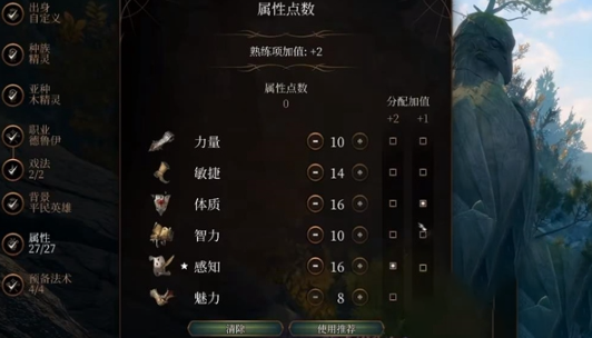 2、基本加点应该是力量10,敏捷14,体质16,智力10,感知16,魅力8。