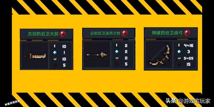 小伙伴们,你们在地牢中见到过古旧的近卫大剑、尘封近卫法师之杖、残破的近卫战弓这三把绿色等级的武器吗?如果你对他们有印象,并且在地牢中遇到过多次,那么老宅建议大家尽量将其累计至8次,因为这三把武器虽然无法锻造,但是却可以激活他的第二种形态,也就是蓝武等级的近卫大剑,近卫法师之杖以及近卫战弓。