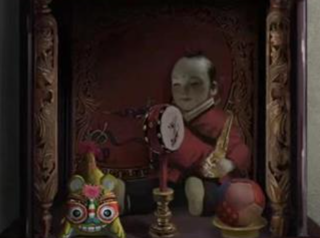 在舞台上,玩家需要摆放蝴蝶,这将给玩家带来新的线索。找到靠旗,拨动浪鼓,并将其摆放至神龛中。靠旗插在最里面房间右手处,找到布老虎并供奉在神龛中,这将引发一个事件。