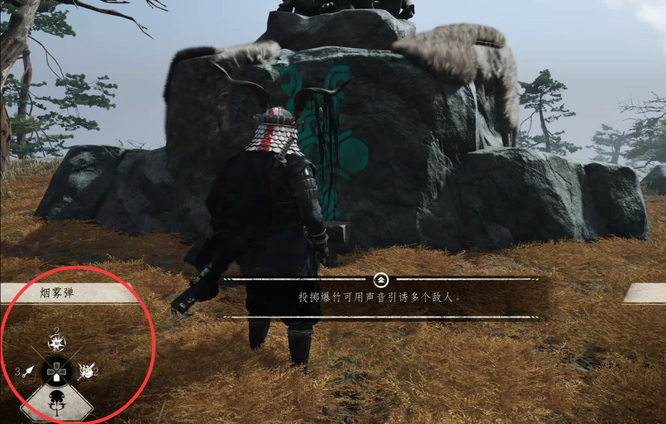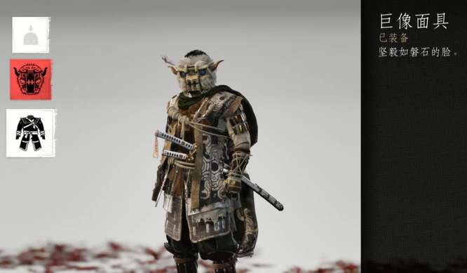 2、装备上境井家传铠甲,头盔、面具随意,然后站在雕像旁,向右滑动手柄触摸板拔刀即可触发动画
