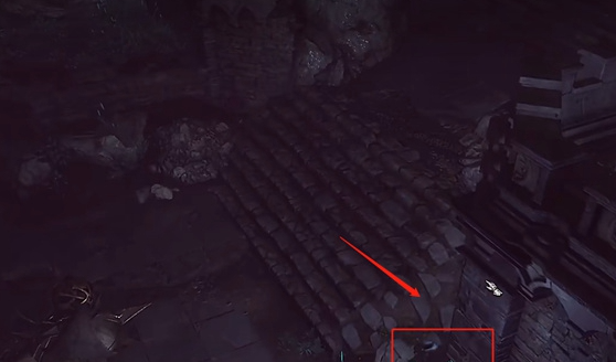 往里走第二个炮台玩家可以躲在楼梯后面躲避。