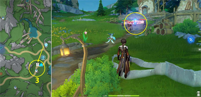 5.第五处位于【枫丹延】,使用风元素角色将五个风车激活,出现微粒收集任务即可开启任务;