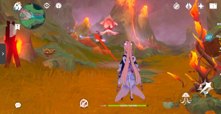 4、继续沿着岸边可以找到下一个装置,周围有荆棘,需要用火元素烧掉。
