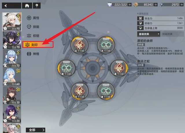 打开深空之眼,在角色属性界面点击查看【刻印】