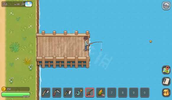 玩家可以种植的土地,就仅限于家门口的那一块,以及后续任务开放的家石伯左边的那个篱笆园里的土地。玩家需要先去杂货店购买种子,然后在土地上,选择快捷工具栏的锄头,锄出一块地来。如果上面有杂草,则需要先用镰刀除掉杂草再锄地。之后打开背包,将种子拖到快捷工具栏。选中工具栏的种子,点一下锄过的地,就算种上了。之后只需要每天浇水即可。