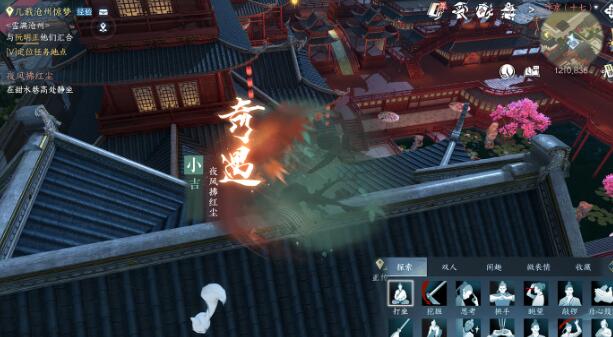 玩家在晚上来到汴京1210,836进行打坐触发夜风拂红尘奇遇。