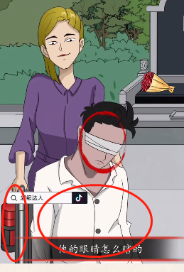 5、然后点击图片中的【水杯】、富豪脖子上的【口红印】以及富豪身上的【头发】。