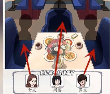 6、左边女友、闺蜜中间、闺蜜男友右边。