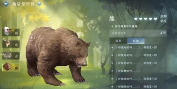 2、目前仙居原共有猴、鹿、虎、熊4种种群,我们可以通过投喂喜欢的食物来提高好感度。