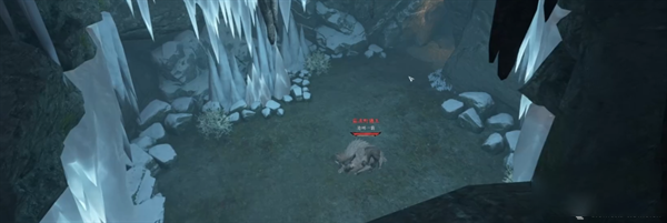 第二步:进入山洞后一直往里面走会看到一个被冰块覆盖到洞口,野猪王就在下面。