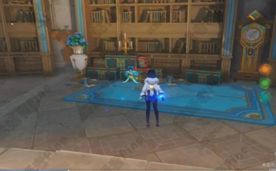 3、从小地图这个位置的漩涡进入,来到上层之后开启大门,在左手边书架上拿到神秘的书页·其六