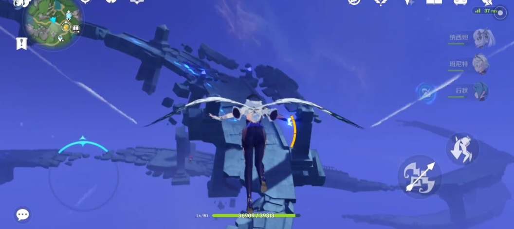 2、拿完第一个宝箱后使用两次传送,然后向左转,飞到下图所示的位置然后顺着路往前走,使用弓箭手来完成挑战,获得精致的宝箱。